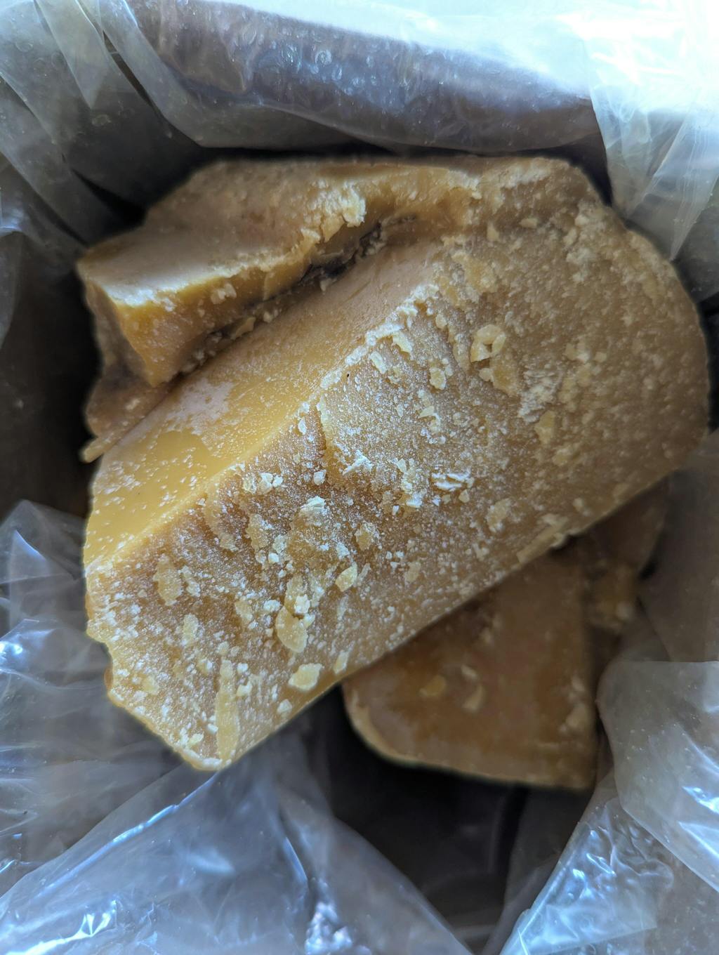 C Grade = USA sourced 100% pure NON-Candle grade. Great for carpentry, furniture polishes, or any industrial use. Comes in various forms (blocks, etc.) and various colors. A mix of filtered and unfiltered. We recommend using a old, clean cotton t-shirt to filter the melted max.